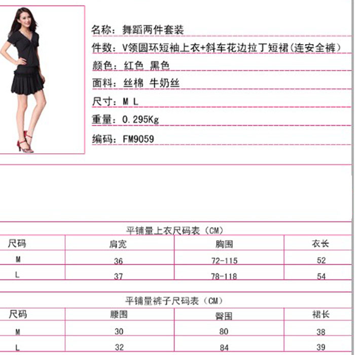 商品編號: | 25660256094 | 商品名稱: | V領圓環短袖上衣+斜車花邊拉丁短裙(連安全褲) | 商品尺寸: | M/肩寬:36cm 胸圍:72-115cm 衣長:52cm 腰圍:30cm 裙長:38cm L/肩寬:37cm 胸圍:78-115cm 衣長:54cm 腰圍:32cm 裙長:39cm | 商品材質: | 絲綿 牛奶絲 | 顏色分類: | 紅色 黑色 | 注意事項: | 1.(實物色彩同圖片可能稍微有些偏差,因不同面料在不同光照下會顯示出多彩質感,以購買産品實物爲准,特此說明,希望諒解!) 2.洗滌說明:爲求個人衛生,請先用鹽水泡15分鍾後,直接用清水過二次水,就可以曬拉。第一次最好不要放肥皂搓洗 3.提醒:深色掉浮色是正常現象,但只要前二次洗加鹽水泡15分鍾,就會有固色作用,不要長時間用洗衣粉泡就絕不會染花。 4.人工測量,1~3CM誤差屬正常。 |