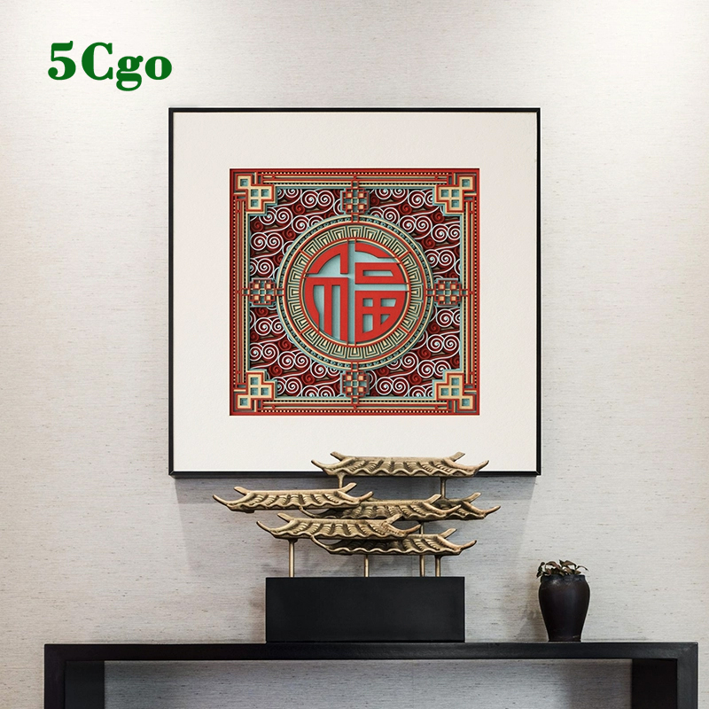 5Cgo【樂趣購】梯木疊雕新中國福字掛畫沙發背景牆裝飾畫玄關畫走廊走道壁畫t689964089704