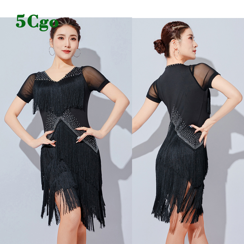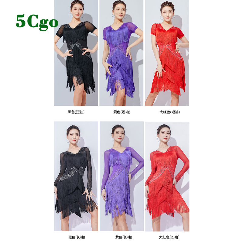 5Cgo【鴿樓】拉丁舞連衣裙紫色洋裝流蘇同鑽長袖短袖成人演出服比賽服t844844729143