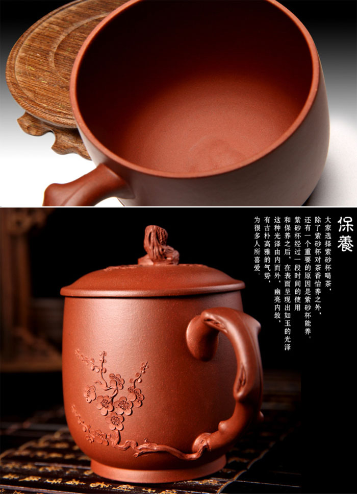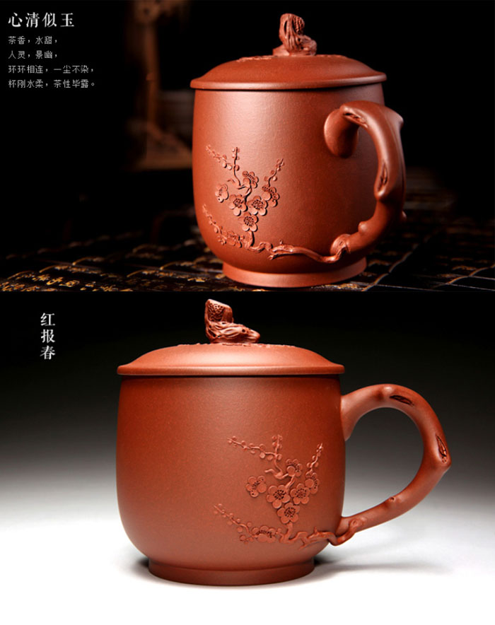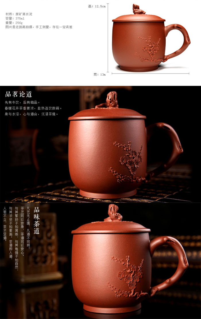5Cgo 41005605803 原礦清水泥紅報春紫砂杯辦公杯手工茶杯帶蓋紅泥馬克杯喝茶杯 LAY08200
