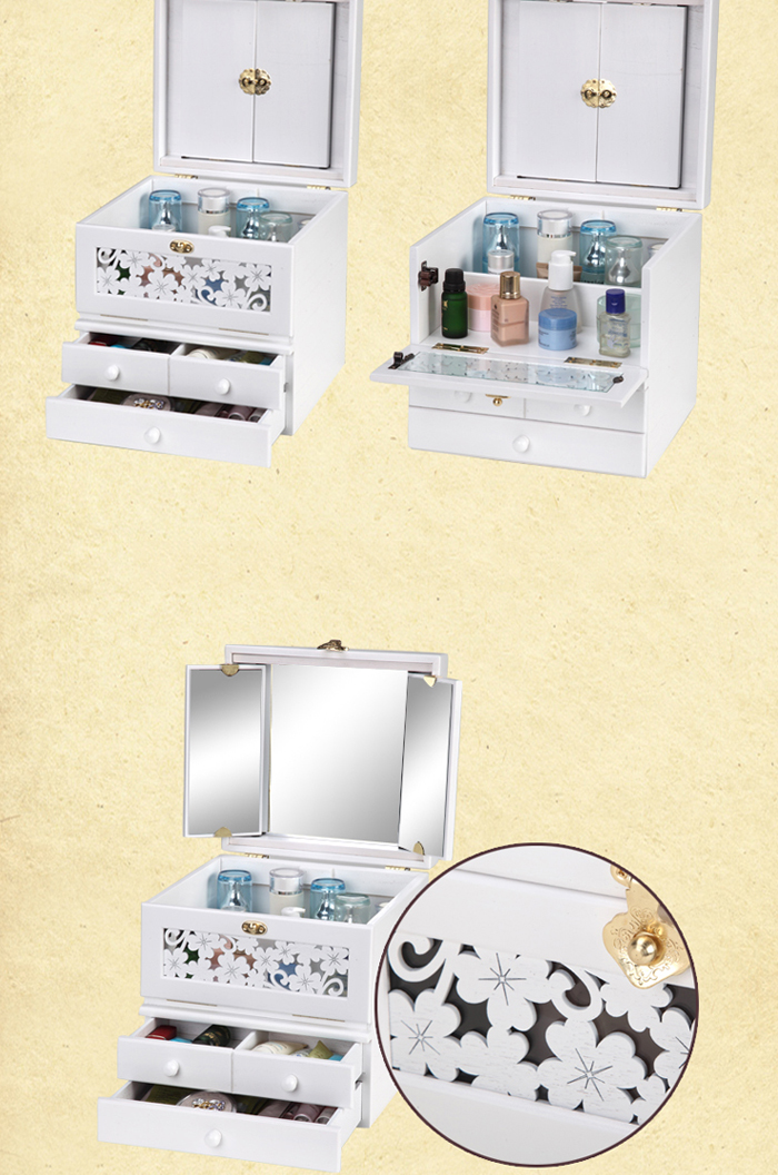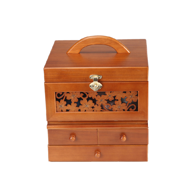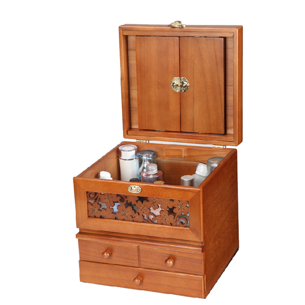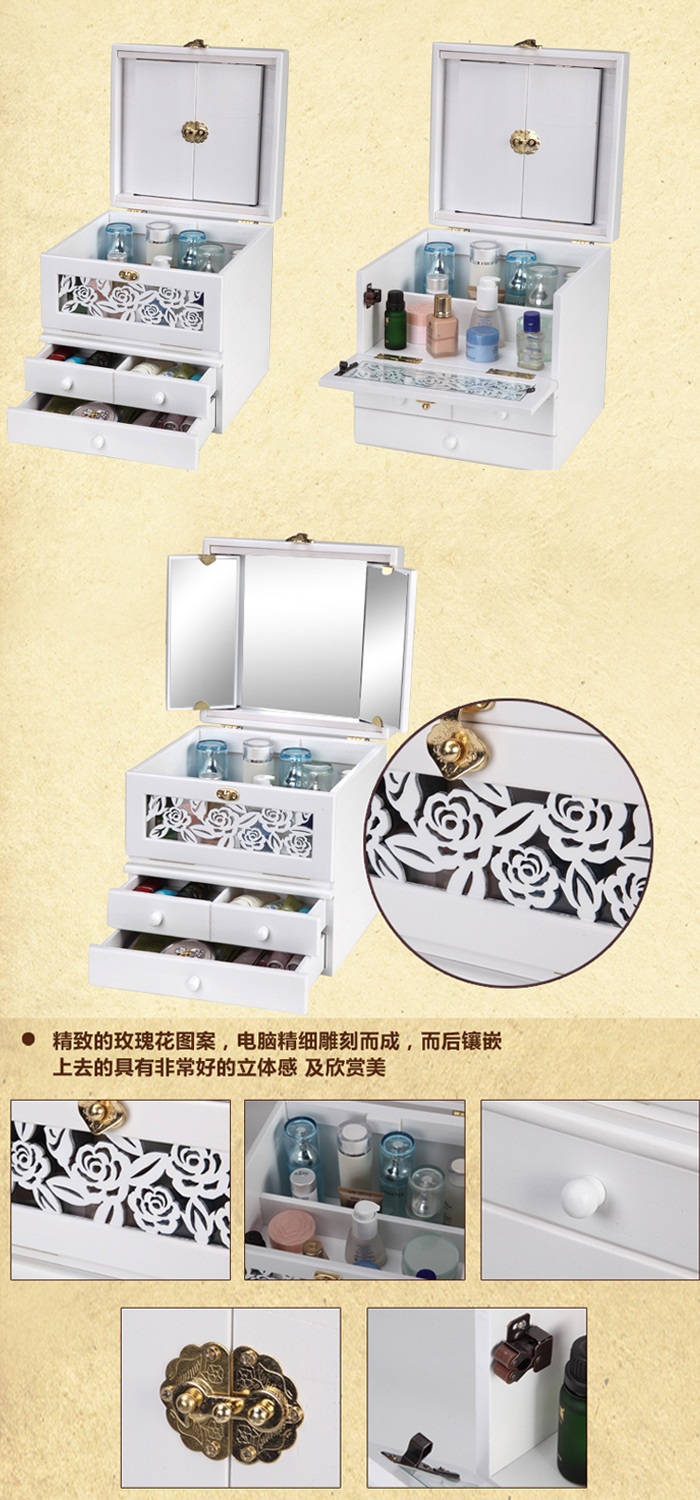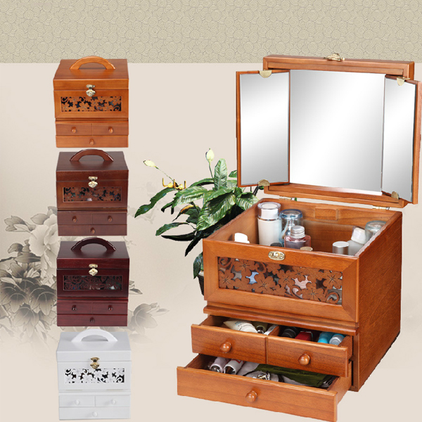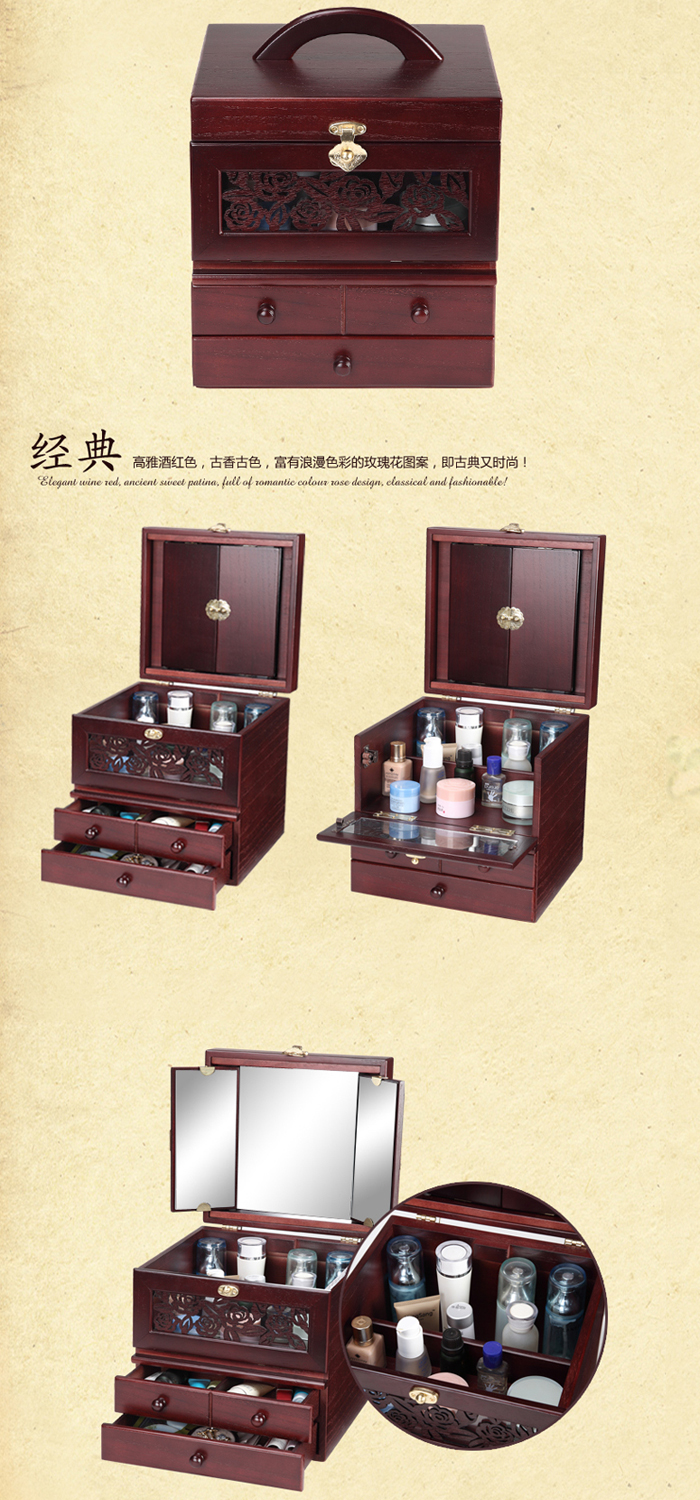 5Cgo 41502574709 雕花木質化妝箱實木化妝盒大號桌面整理箱化妝品收納盒梳妝盒 儲物盒 飾品盒 GSX92300