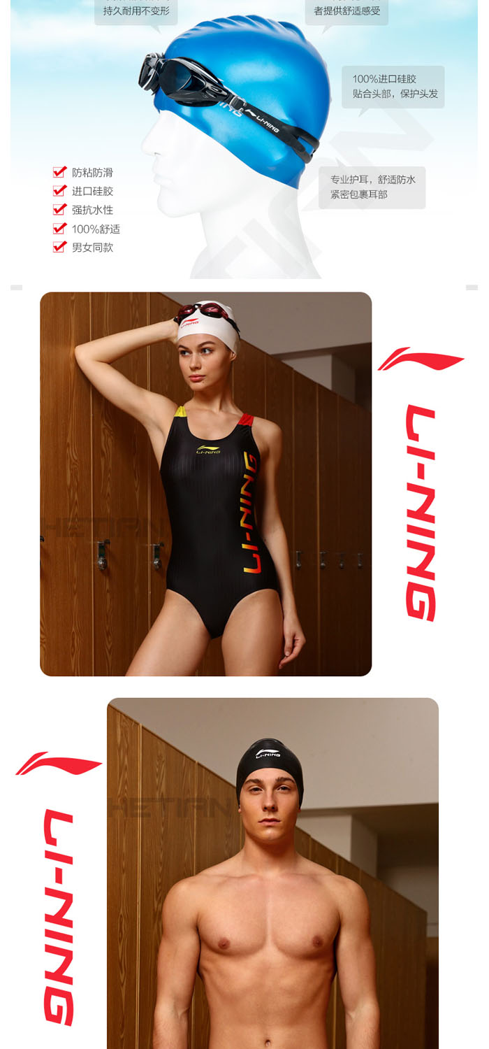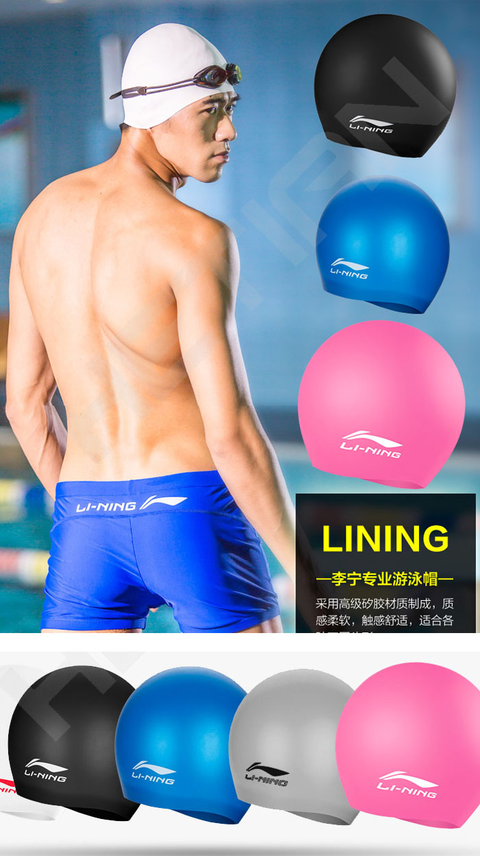 5Cgo 520332058794 李宁泳帽防水長發護耳男女通用矽膠泳帽純色時尚遊泳裝備成人 GSX22000