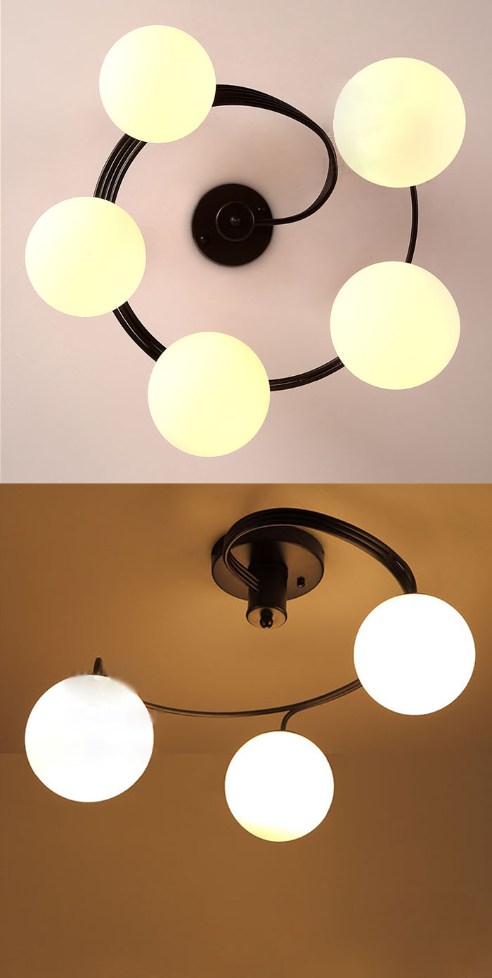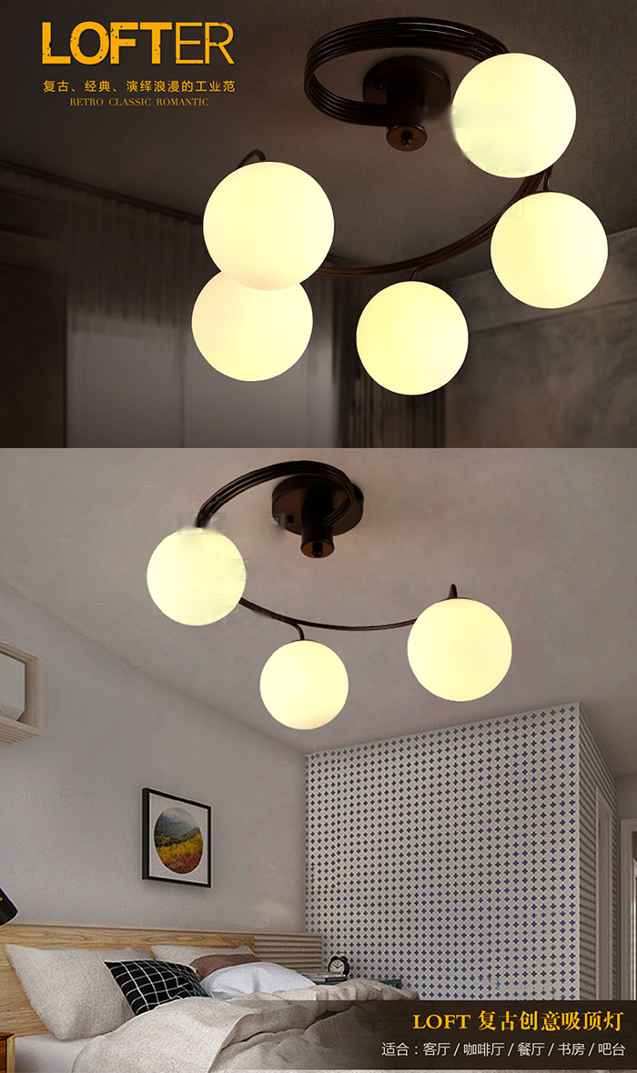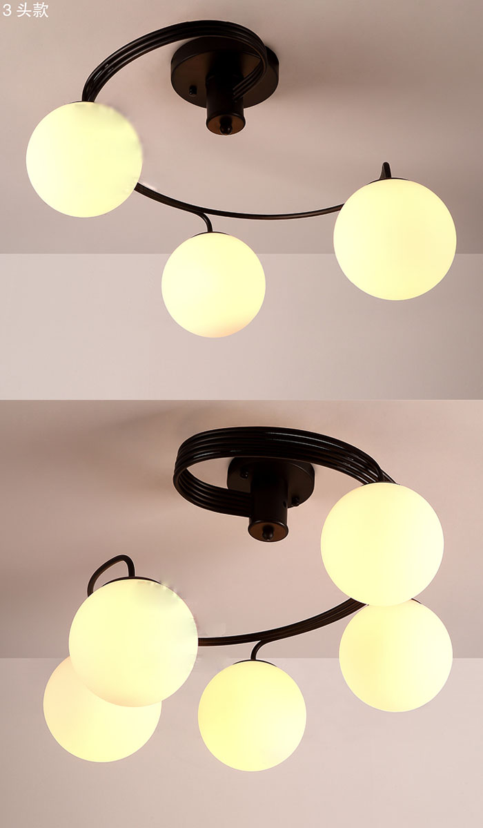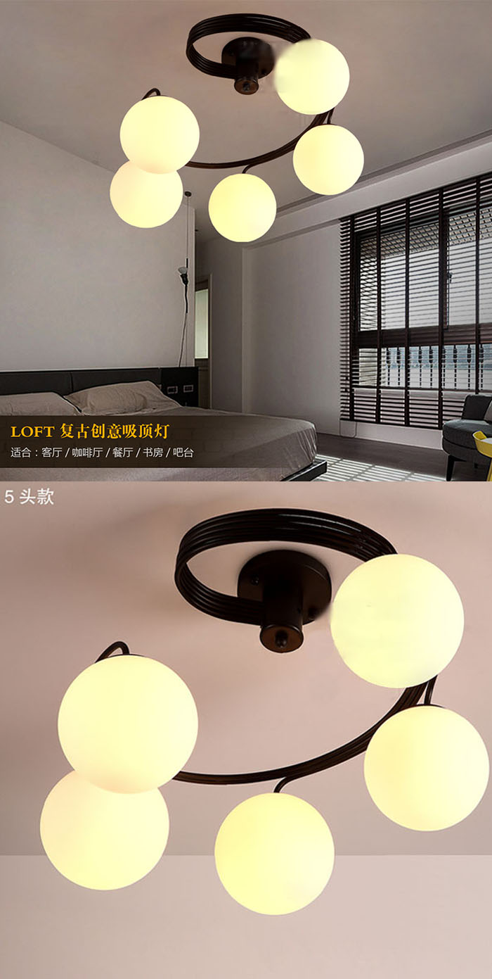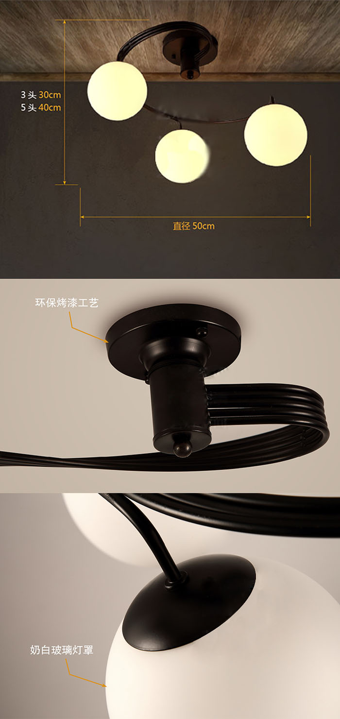 sale_title  5Cgo 534823595629 美式客廳吸頂燈圓形簡約臥室燈大氣鐵藝玻璃餐廳燈具--3頭 LYP93200