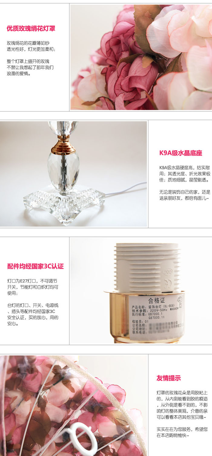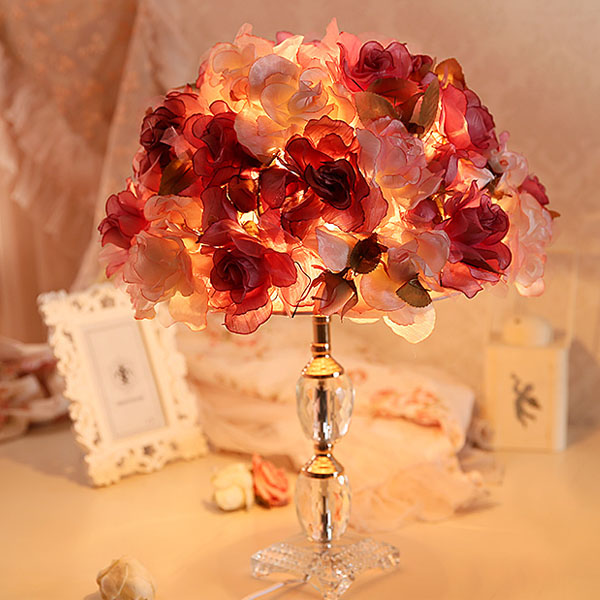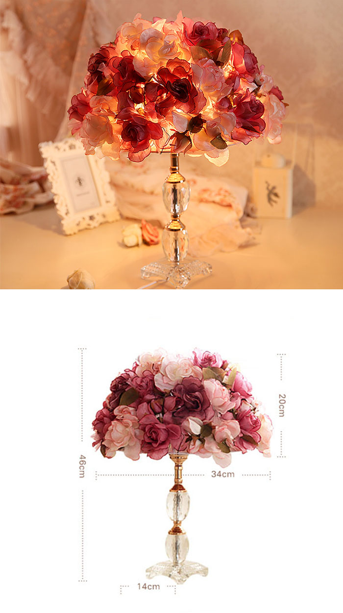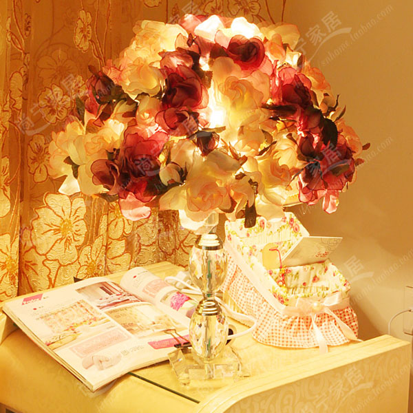 sale_title  5Cgo 9247760964 臥室床頭燈創意時尚玫瑰花新結婚房禮物布藝長明燈浪漫臺燈 LYP58100