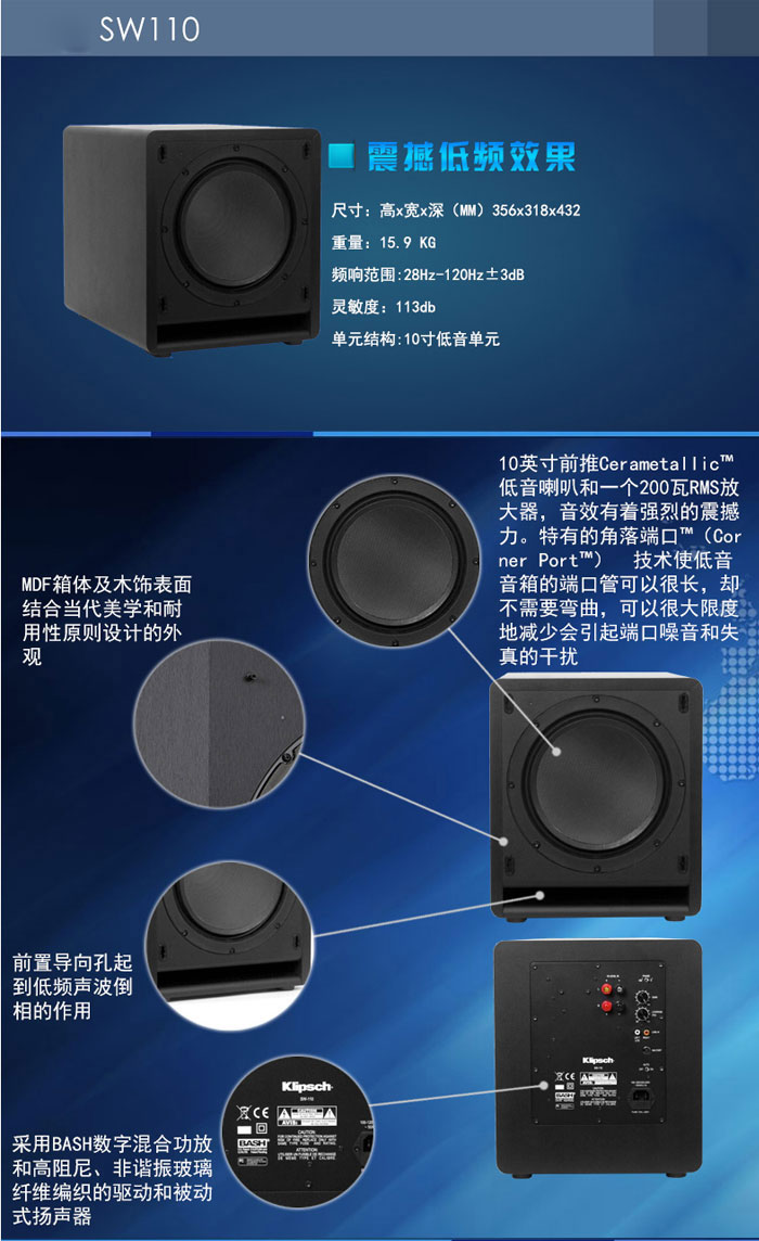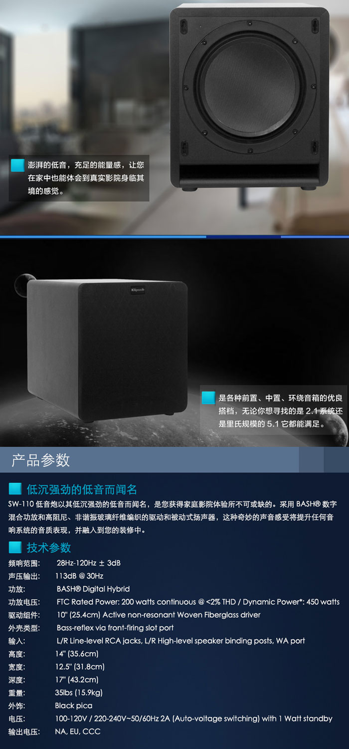 5Cgo 544357715331 klipsch SW110 家庭影院有源超重低音炮音箱前置導向大功率 PY09240