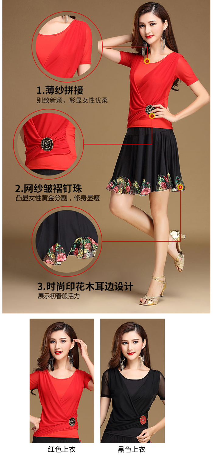 5Cgo 545942458640 琳奈美廣場舞服裝上衣短袖春夏季薄紗拉丁舞服裝舞蹈服裝 上衣 GSX94000