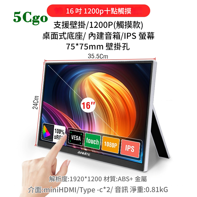 商品名稱:5Cgo【二店】16吋觸控款1200P-60Hz壁掛自帶支架隨身顯示器手機投影電腦擴充Switch螢幕商品尺寸:16吋材質:ABS+金屬顏色:黑色出貨配件:顯示器、數據線、電源線商品詳情:商品編號:t877950261461✨豐富接口。✨重量0.81kg,厚度1.2cm,攜帶方便。✨內置揚聲器。✨支持掛壁式安裝(孔間距7.5*7.5cm)✨雙屏工作,效率翻倍。✨電容式觸摸顯示器,觸感靈敏,書寫絲滑。✨支持多種設備連接。✨可豎屏,可橫屏。