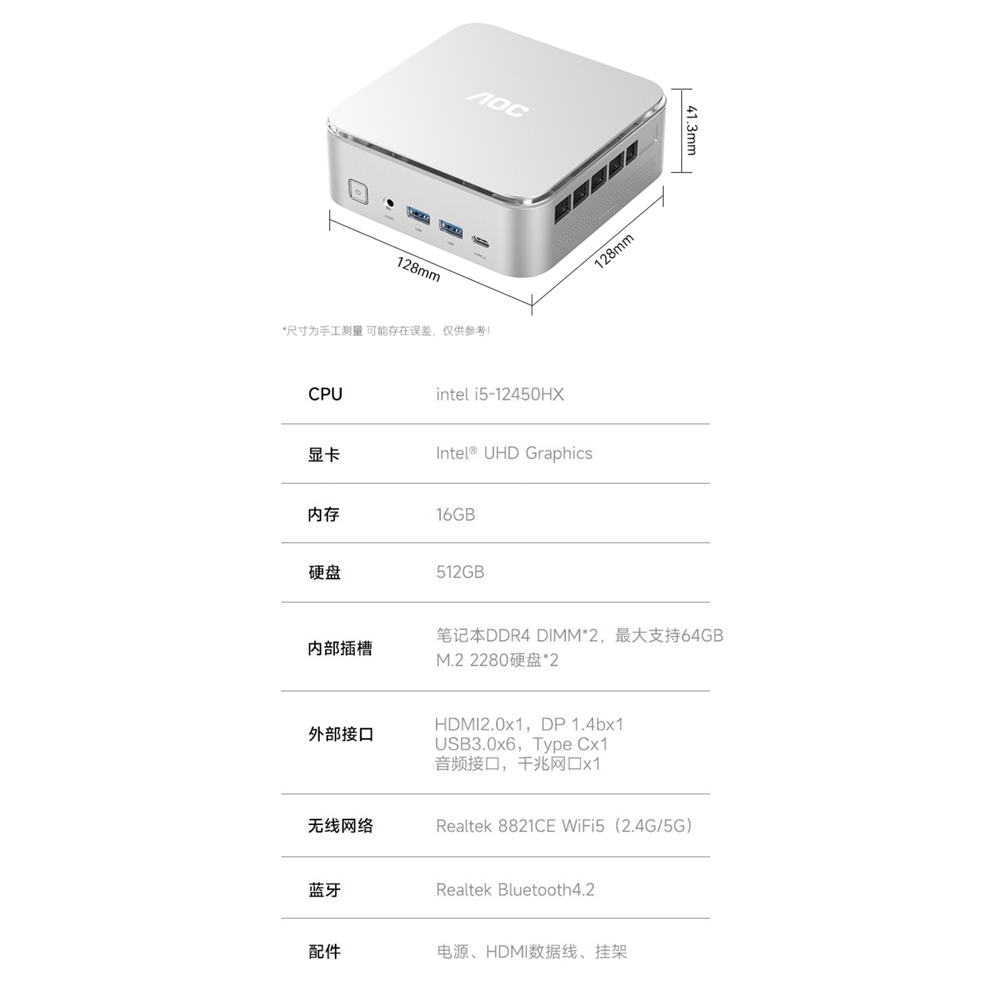 商品名稱:5Cgo【二店】AOC Mini迷你主機MOSS小苔蘚M6Plus辦公室家用微型便攜式桌上型電腦t921433369667商品尺寸:130*130*45mm材質:金屬顏色:銀白色出貨配件:出貨僅迷你電腦,熒幕另購。商品詳情:商品編號:t921433369667✨i5-12450HX+16G+512G固態✨經久耐用。✨小體機,多接口。