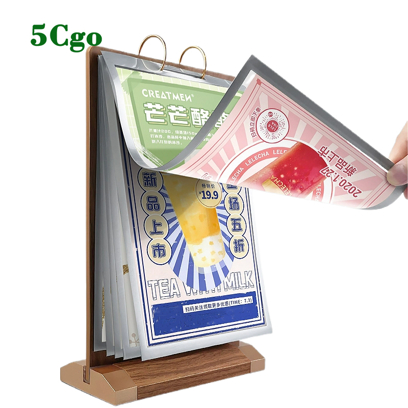 5Cgo【樂趣購】翻頁臺卡立牌展示牌6頁12面桌牌木紋廣告牌菜單宣傳牌pvc菜單餐牌t677359035996