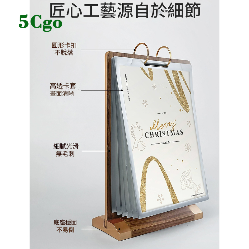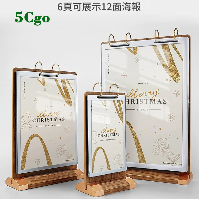 5Cgo【樂趣購】翻頁臺卡立牌展示牌6頁12面桌牌木紋廣告牌菜單宣傳牌pvc菜單餐牌t677359035996