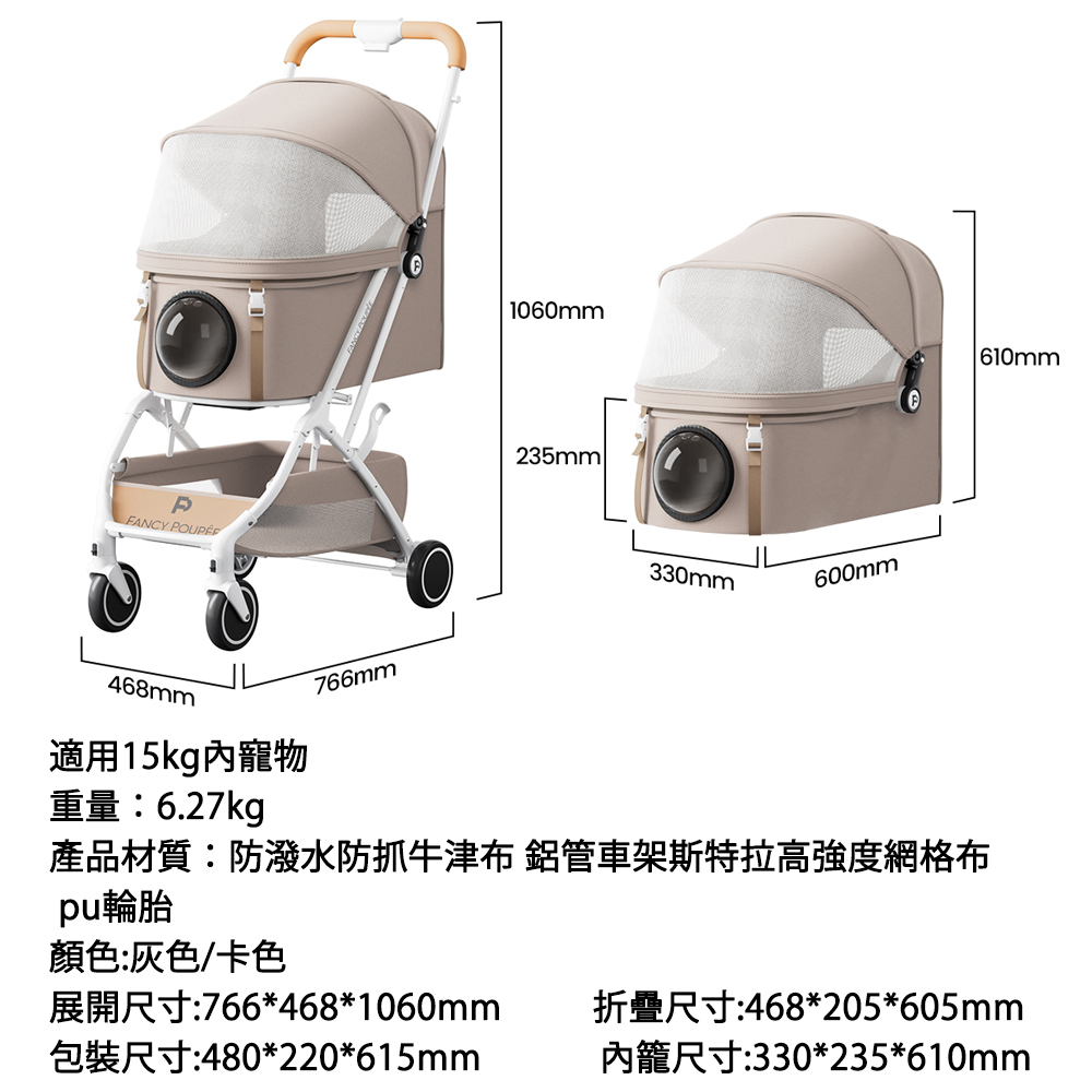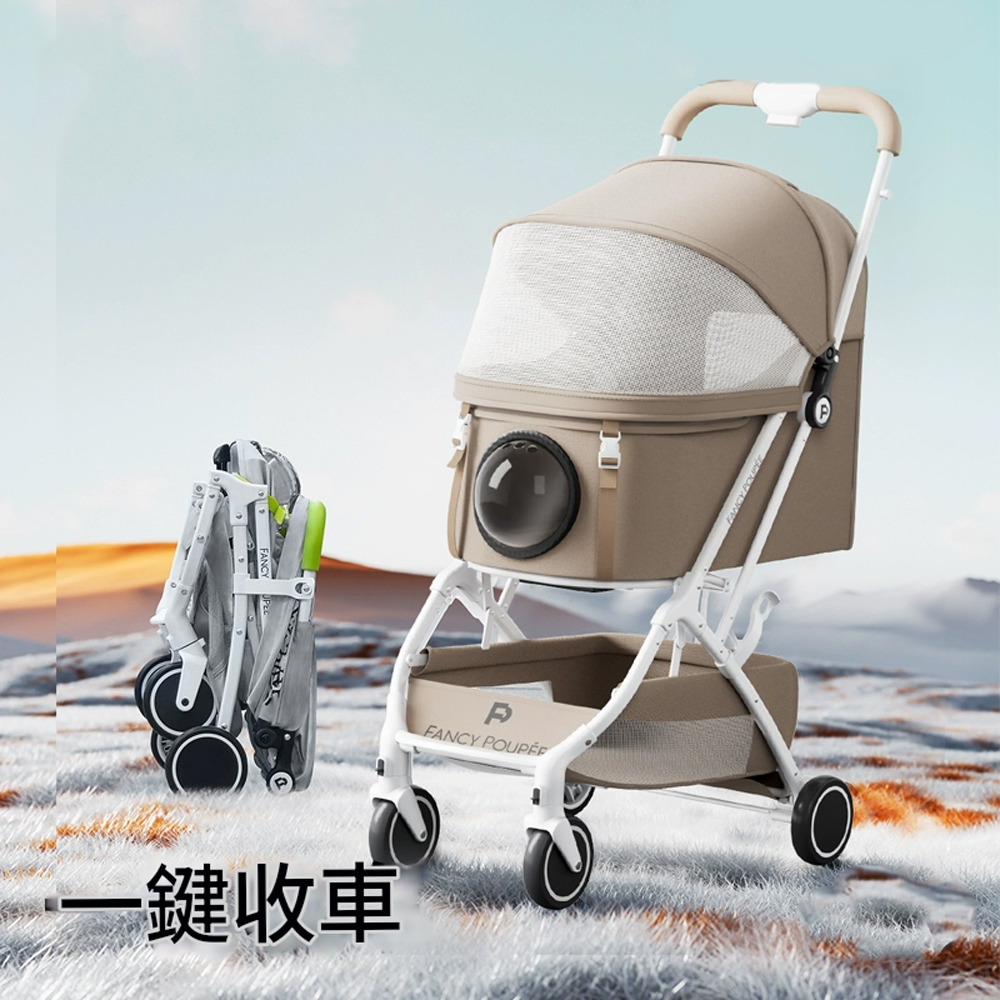 5Cgo【樂趣購】中小型寵物推車一鍵折疊貓狗輕便外出手推車t823412337786