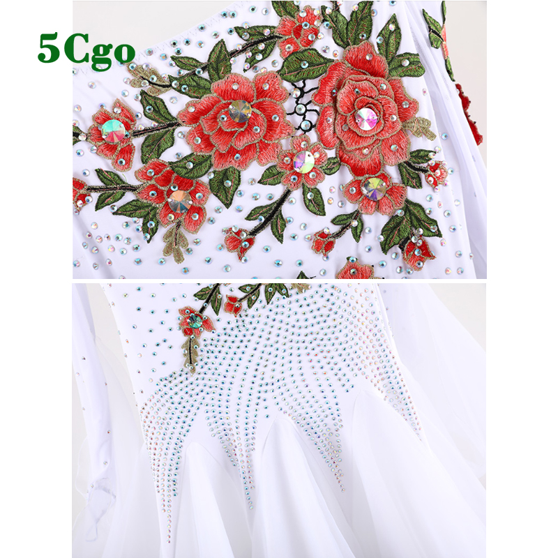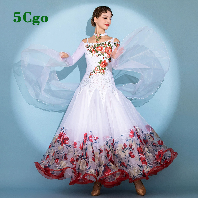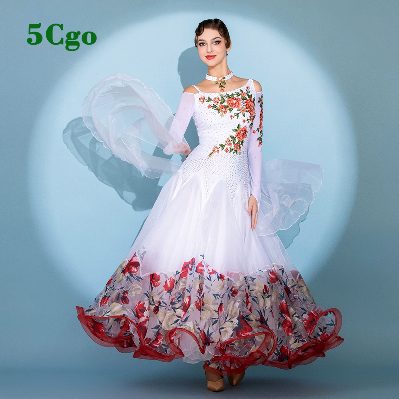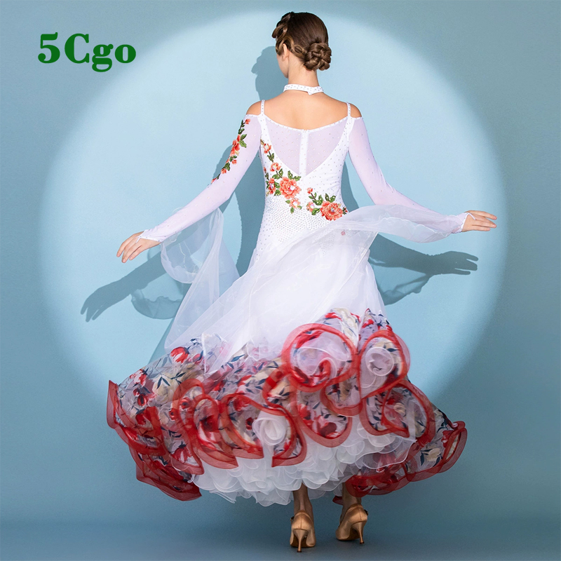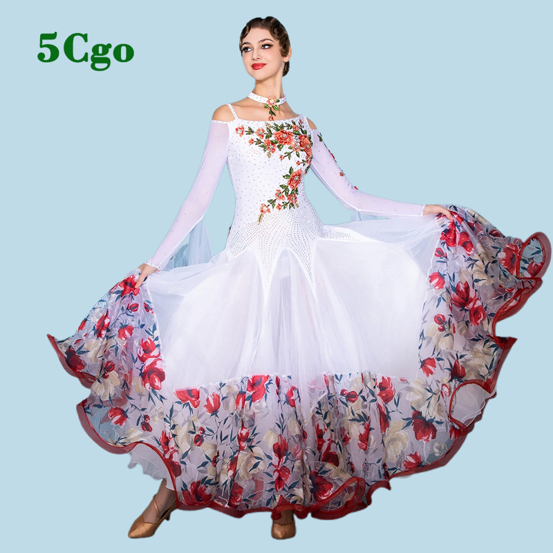 5Cgo【鴿樓】摩登舞裙標准舞舞會舞服鬱金香印花舞衣國標舞比賽表演交誼舞華爾茲大擺裙t923528993742