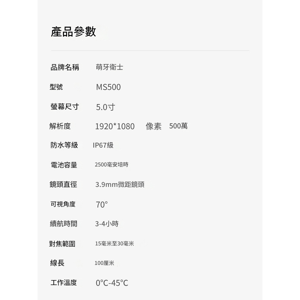 | | | | 商品名稱: | 5Cgo【樂趣購】專業掏耳神器可視采耳儀5吋高清家用按摩店理挖耳技師專用商用t726355098191 | | 商品尺寸: | 5吋屏幕 | | 材質: | 金屬 | | 顏色: | 圖片色 | | 出貨配件: | 采耳儀(儀器+(精鑷/耳起/湯匙/勾/圈+32G)) | | 商品詳情: | 商品編號:t726355098191 ✨led燈珠有點發熱是正常的。 ✨5吋大螢幕、500萬高清像素、開機即用、1280*720分辨率 ✨升級版晶片、3小時超長待機、3.9mm外徑直徑 ✨IP67防水,可以防護意外潑水、濺水。不能直接沖水泡水。可以抹布濕水擰乾清潔。 ✨多用途,可采耳、口腔檢查、皮膚檢查、寵物檢查。 ✨邊看邊掏更乾淨,解壓。 | | 注意事項: | ★均為實物拍攝,由於光線顯示器等原因 圖片顏色可能與實物有些偏差、請以實物為准 。 ★請務必仔細查看商品的尺寸(測量手法不同,可能會有些許誤差) ★商品深圳出貨,交貨時間約2個禮拜左右,您可等待再下單購買哦。 | | | | | | ◇關於退換貨: ●商品皆為代購/客訂商品請自行確定此商品為您需所物品,概不無條件接受個人感觀因素退換貨。 退貨您需承擔物品來回運費,物品為海外寄回台灣的物品,運費是以重量或體積計算的且也比台灣本島配運費較貴。 ●退回商品要保證商品沒有使用過:吊牌包裝整齊,商品的潔淨,同期的贈品一起寄回,缺件或汙損概不接受退換貨。 ●不理性並以負評威協者,一律加入黑名單並洽平臺客服申訴。◇預購/客訂商品不比照七天猶豫期辦理。 | | | | | |