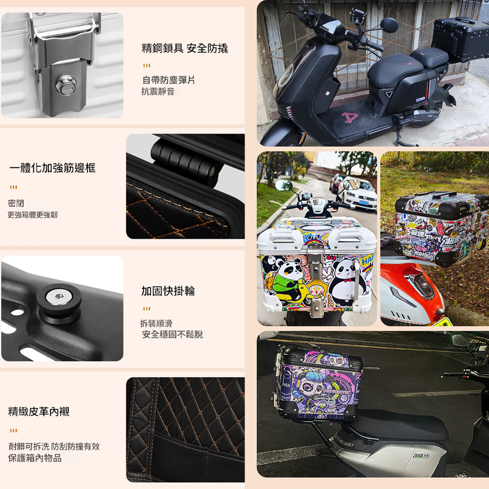 sale_title  5Cgo【樂趣購】摩托車鋁合金防水耐用尾箱大容量復古圓角後尾箱機車電動車後車箱後置箱t792369174161
