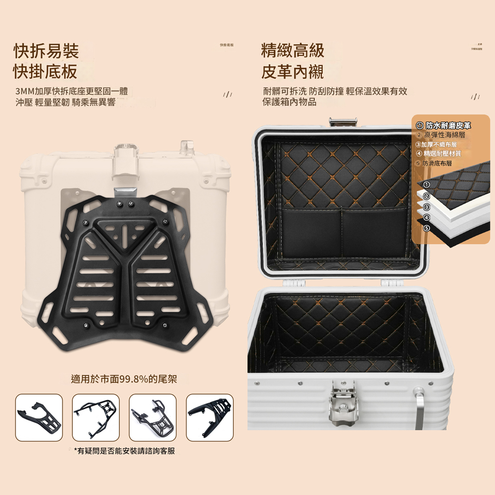 出貨配件: 尾箱、內襯、快拆轉接板、安裝工具配件包(需要背靠要加錢,請洽客服。)