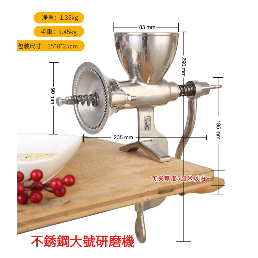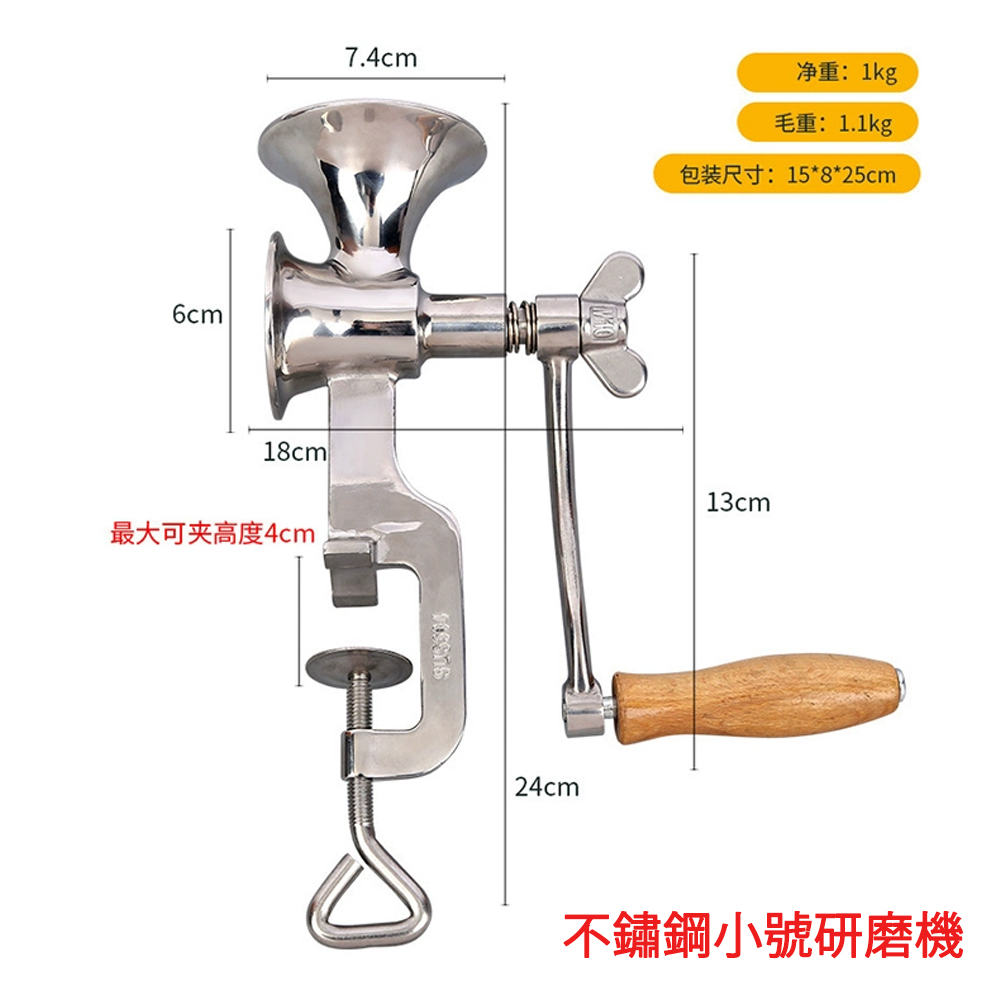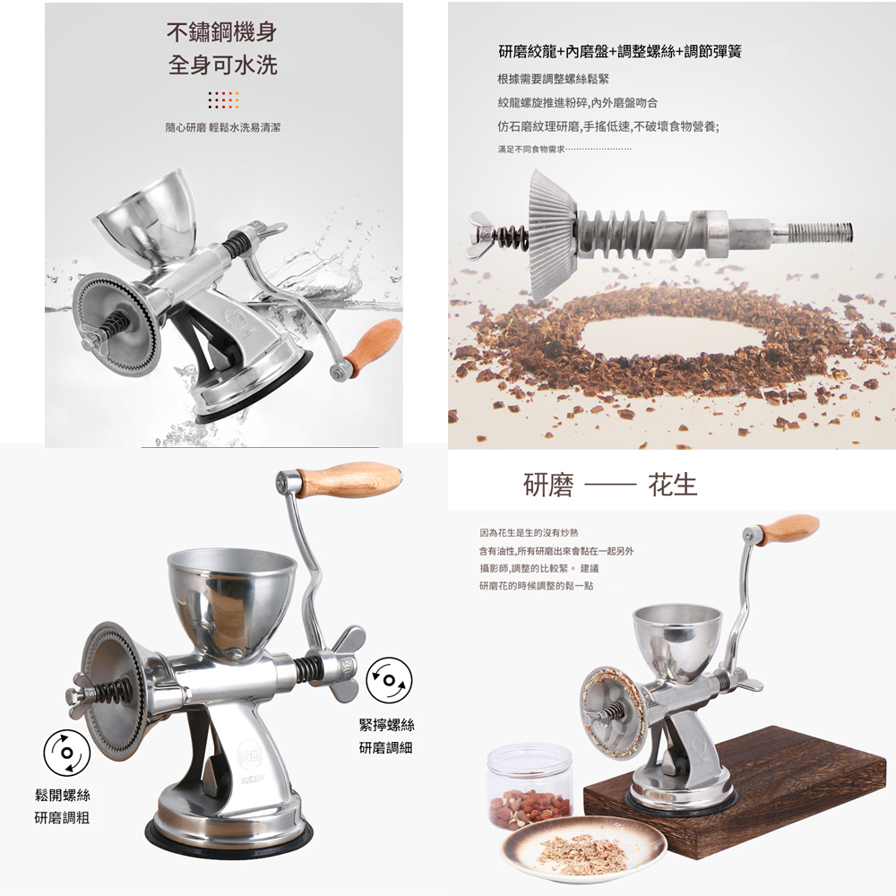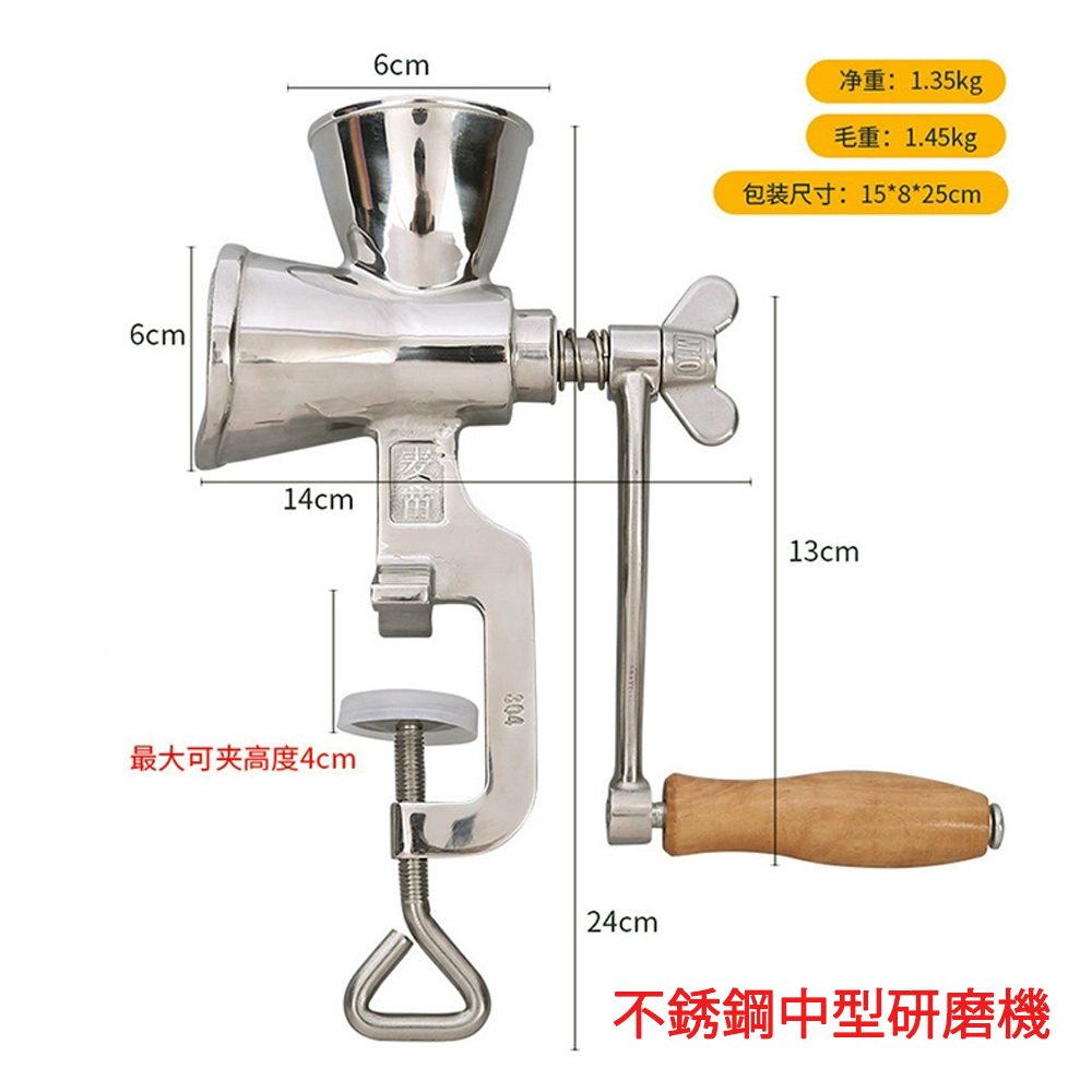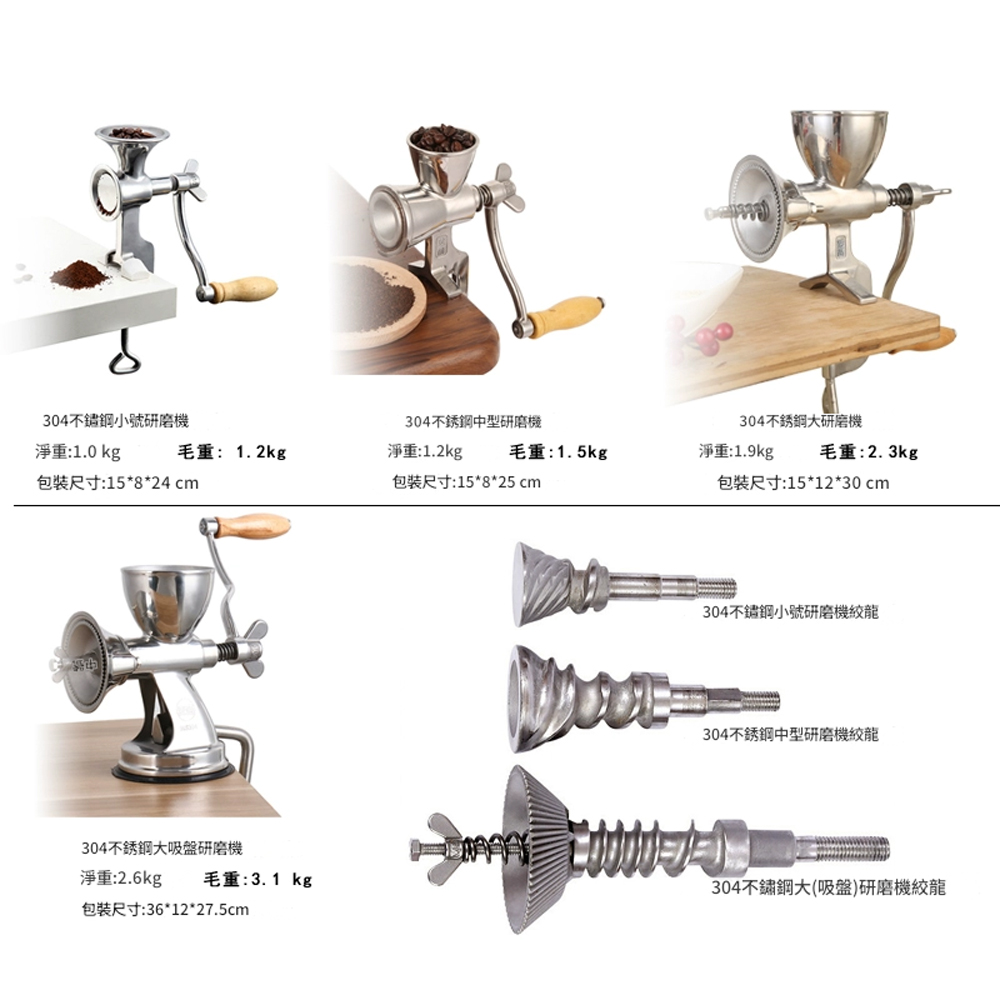 | | | | 商品名稱: | 5Cgo【樂趣購】304不鏽鋼手動咖啡豆研磨機磨豆機粗細可調多功能藥材香料谷物研磨器t698044235493 | | 商品尺寸: | 吸盤款包裝:36*12*27.6cm | | 材質: | 不鏽鋼 | | 顏色: | 銀色 | | 出貨配件: | 磨豆器(默認出貨吸盤款不鏽鋼大研磨機) 不鏽鋼小號研磨機1090元 不銹鋼中型研磨機1290元 不銹鋼大研磨機2230元 吸盤款不鏽鋼大研磨機2850元 | | 商品詳情: | 商品編號:t698044235493 ✨粉末粗細可調節,鬆開螺絲調粗,擰緊螺絲調細。 ✨一機多用,可磨咖啡豆、五穀雜糧、堅果、香料(不能磨太硬的食物)。 ✨可夾厚度5cm左右。 ✨研磨機日常使用與保養 1. 調整粗細的螺帽旋過的過緊會使轉動困難,可以倒轉一圈,並減少放入食物; 2. 機器研磨工作時,因調節兩個磨盤間隙較大,粗細不均勻屬正常現象; 3. 使用後,可整機水洗,清洗後可以晾乾,或用抹布擦乾保存; 4. 不用的時候可以存放在乾燥陰涼的地方; 5. 請勿讓兒童單獨操作本產品; | | 注意事項: | ★均為實物拍攝,由於光線顯示器等原因 圖片顏色可能與實物有些偏差、請以實物為准 。 ★請務必仔細查看商品的尺寸(測量手法不同,可能會有些許誤差) ★商品深圳出貨,交貨時間約2個禮拜左右,您可等待再下單購買哦。 | | | | | | ◇關於退換貨: ●商品皆為代購/客訂商品請自行確定此商品為您需所物品,概不無條件接受個人感觀因素退換貨。 退貨您需承擔物品來回運費,物品為海外寄回台灣的物品,運費是以重量或體積計算的且也比台灣本島配運費較貴。 ●退回商品要保證商品沒有使用過:吊牌包裝整齊,商品的潔淨,同期的贈品一起寄回,缺件或汙損概不接受退換貨。 ●不理性並以負評威協者,一律加入黑名單並洽平臺客服申訴。◇預購/客訂商品不比照七天猶豫期辦理。 | | | | | |