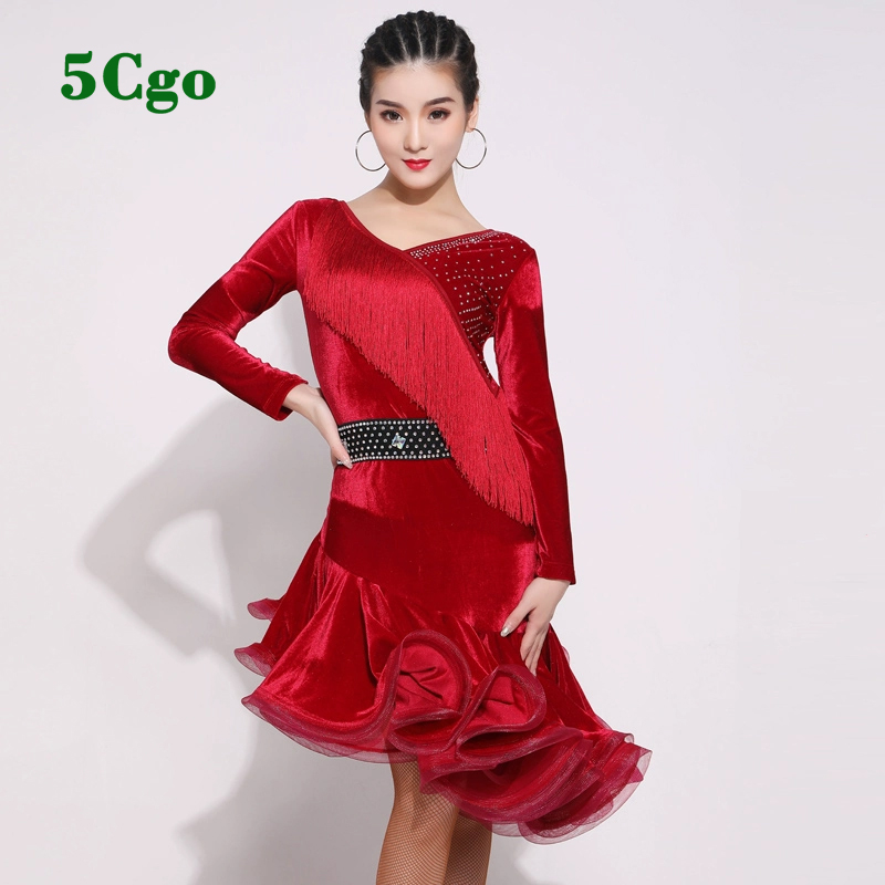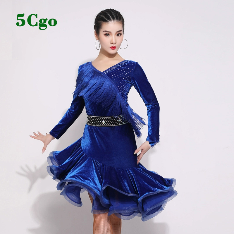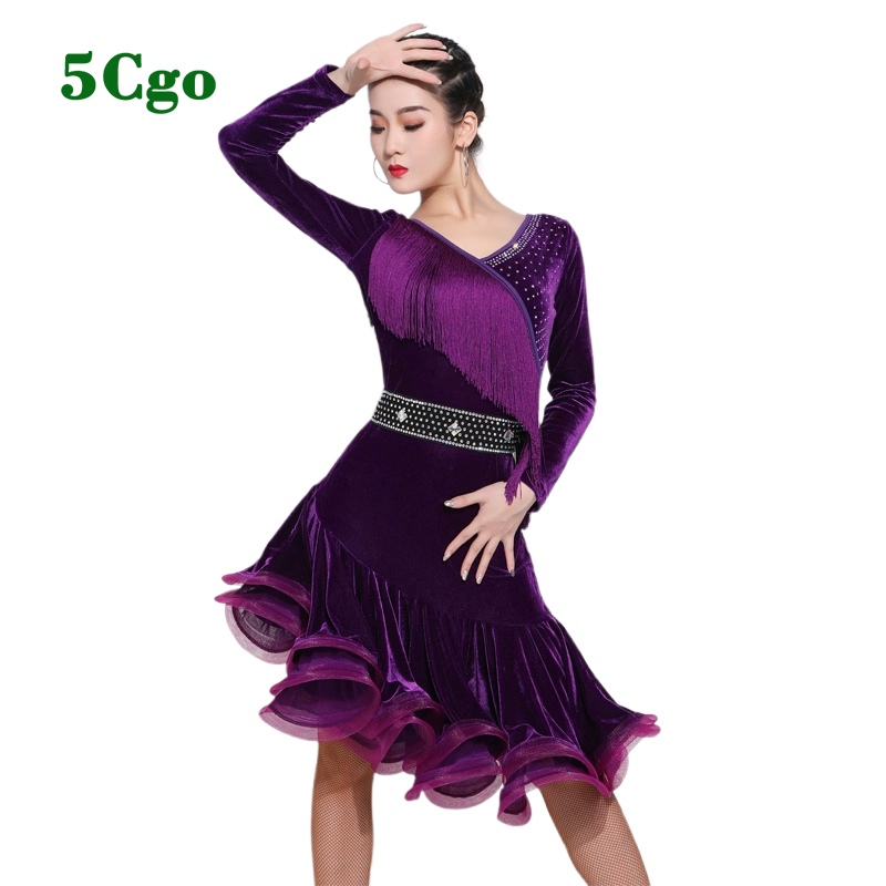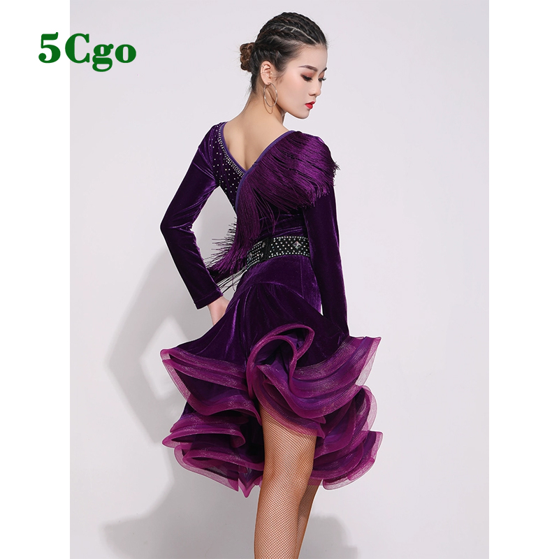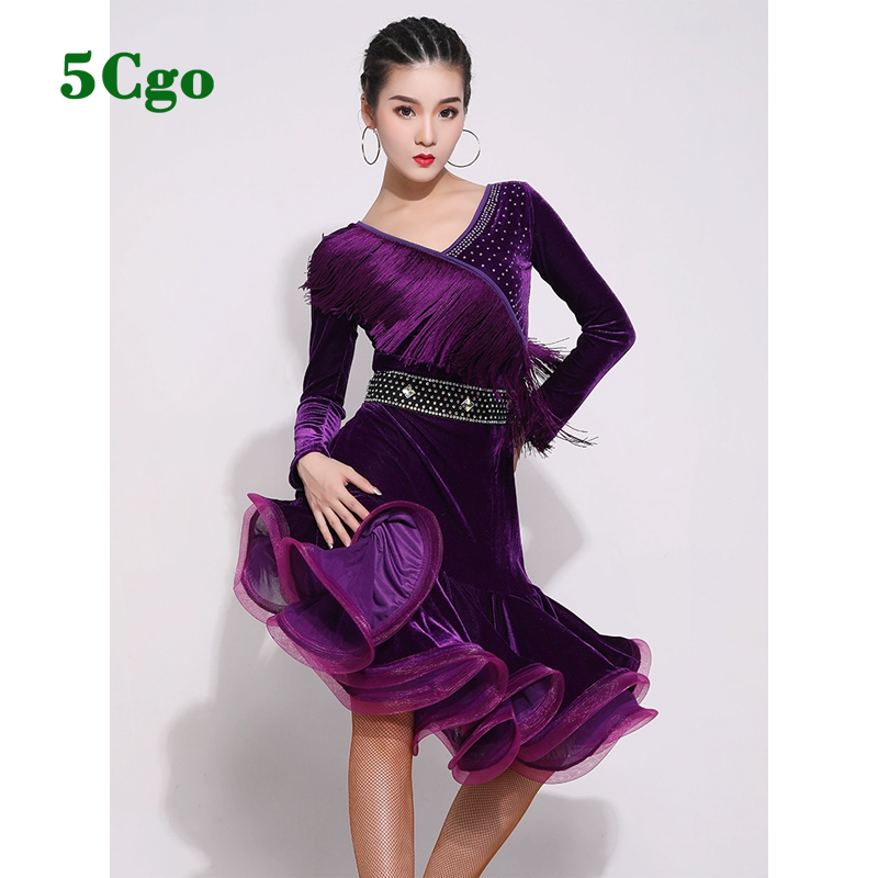 sale_title  5Cgo【鴿樓】拉丁舞服女成人流蘇長袖絲絨洋裝新款練功服紫色紅色藍色秋冬季專業演出服t560642227165
