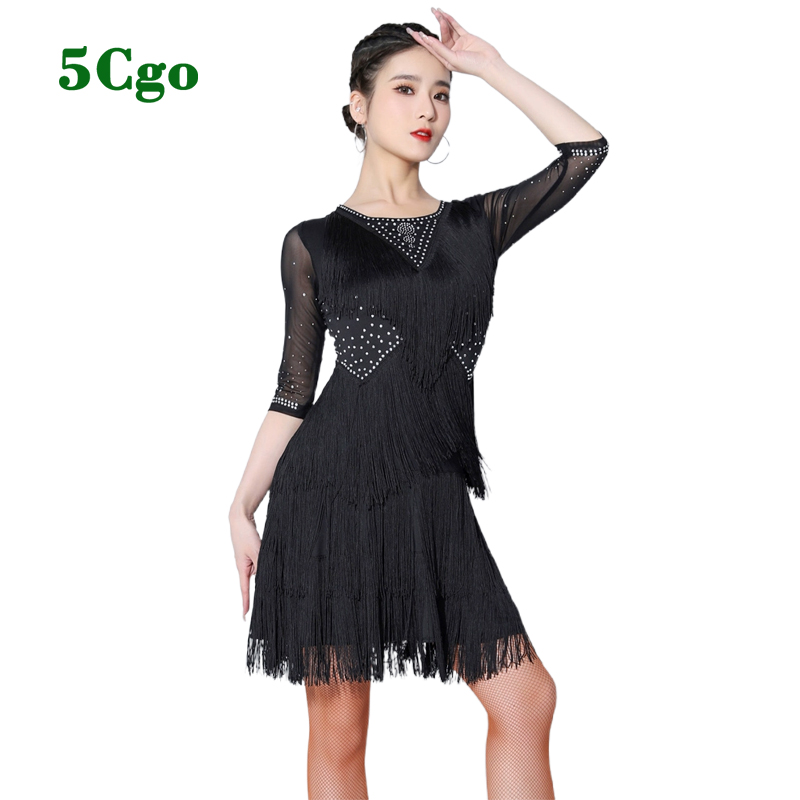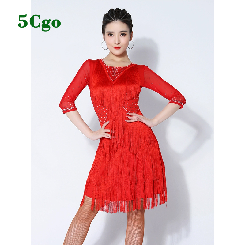 商品名稱: 5Cgo【鴿樓】拉丁舞連衣裙流蘇燙鑽中袖練功裙舞蹈服比賽服演出服裝另有紅色藍色t704455996957