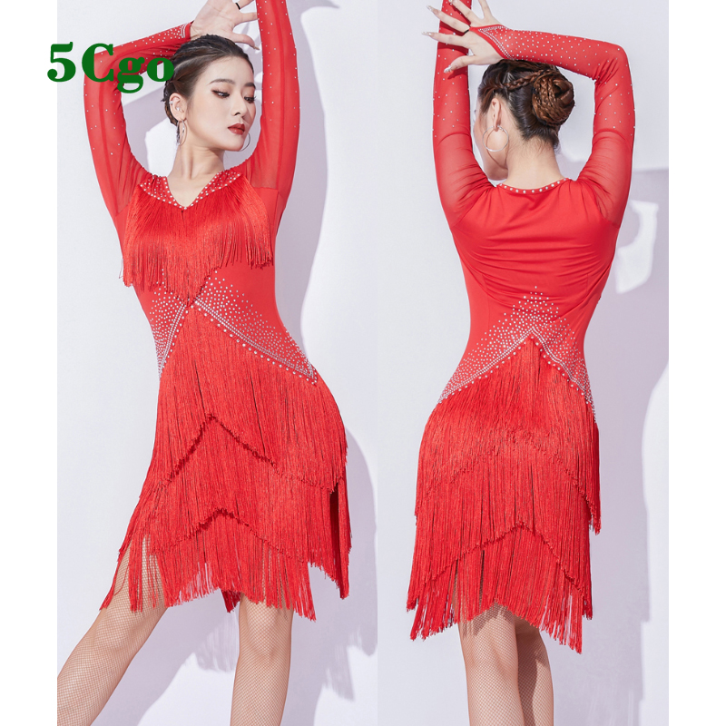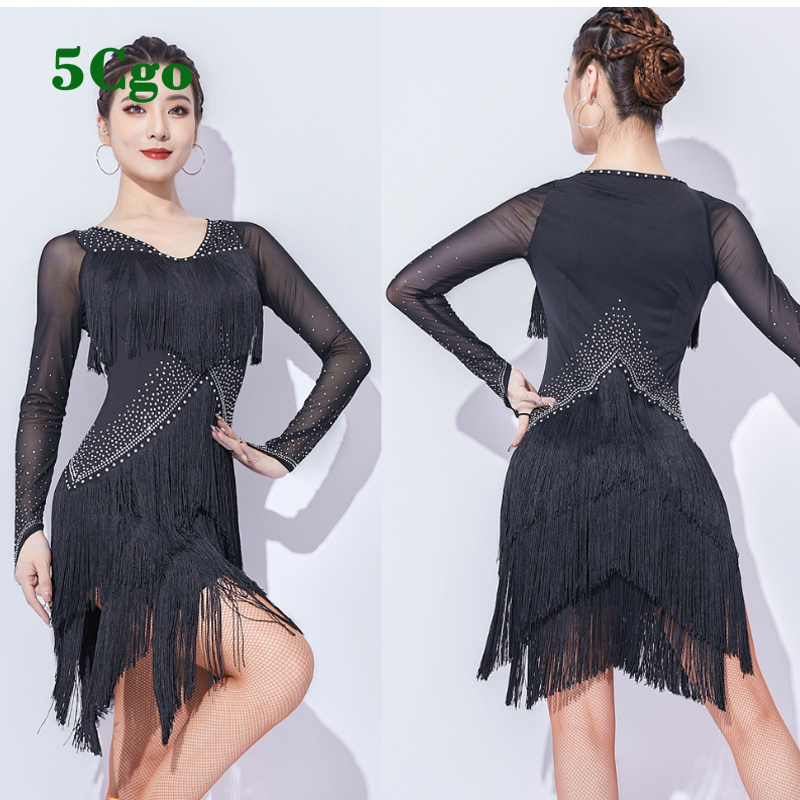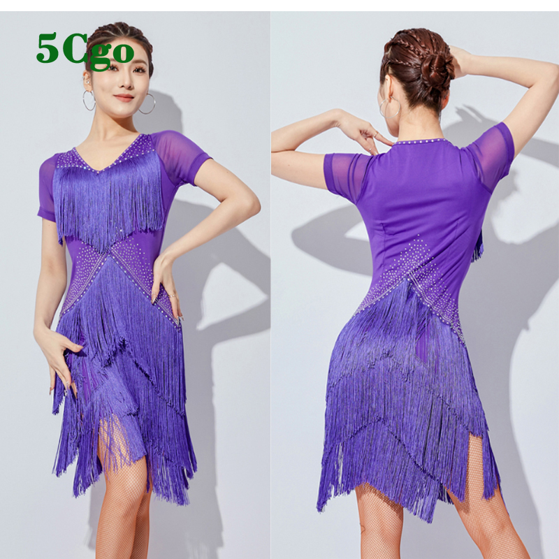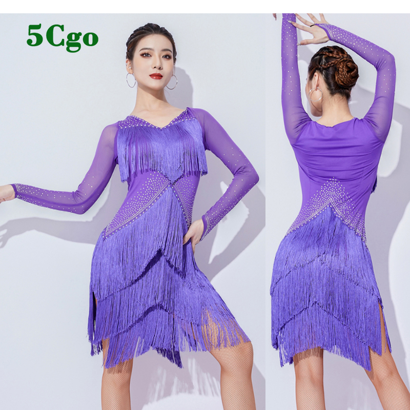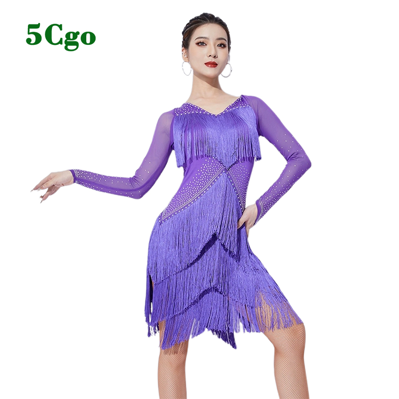 sale_title  5Cgo【鴿樓】拉丁舞連衣裙紫色洋裝流蘇同鑽長袖短袖成人演出服比賽服t844844729143
