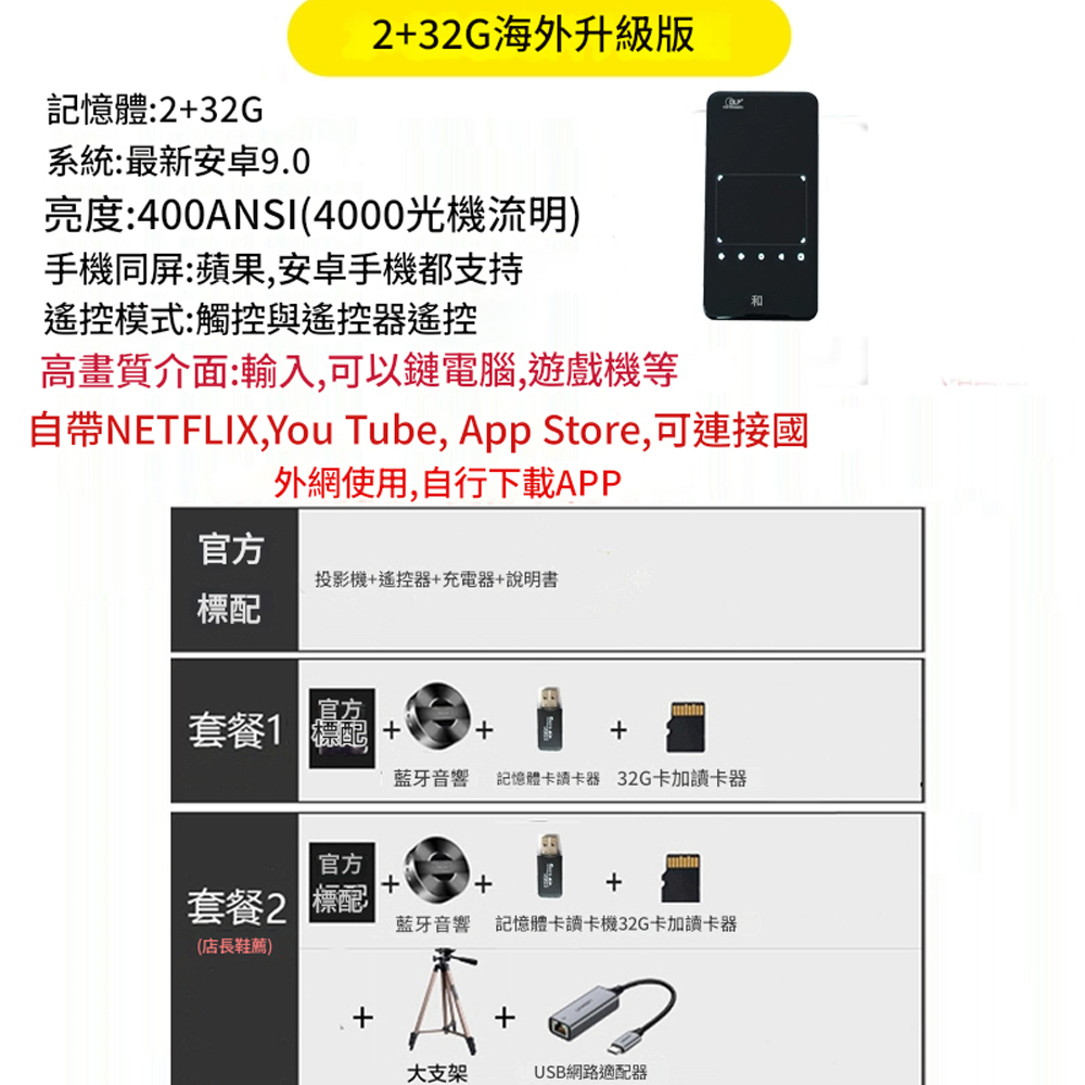 | | | | 商品名稱: | 5Cgo【樂趣購】蔓彤小型迷你投影機超薄超小高清迷你mini微型口袋掌上投影儀t758365051316 | | 商品尺寸: | 145*80*16mm | | 材質: | 金屬 | | 顏色: | 黑色 | | 出貨配件: | 投影儀 標配:14080元 套餐一:14790元 套餐二:15600元 | | 商品詳情: | 商品編號:t758365051316 ✨投影焦距類型:長焦 光學解析度:1920x1080dpi 整機功率:15W 儲存容量(ROM):32GB 語音遙控類型:不支援語音遙控 支援畫面比例:16:9 機體尺寸(mm):145x80x16mm 運行記憶體(RAM):2GB 是否有布幕自適應功能:不支援布幕自適應功能 適用場景:行動便攜 家庭劇院 智慧系統:Android(安卓) 套餐:官方標準配備 套餐二 套餐一 光源功率:15W 視訊介面:USB-C HDMI 是否支援自動梯形校正:是 投射比:1.2:1 光源類型:LED光源 智能避障:不支援智能避障 燈泡壽命:30000小時 品牌:蔓彤 型號:P09-II 最大相容解析度:1920x1080 最佳投影距離:2m 是否支持WIFI:支持WIFI 自動對焦:不支援自動對焦 投影機亮度:400ANSI流明 鏡頭材質:玻璃樹脂混合 變焦倍數:定焦 整機保固期:12個月 安裝方式:吊裝 | | 注意事項: | ★均為實物拍攝,由於光線顯示器等原因 圖片顏色可能與實物有些偏差、請以實物為准 。 ★請務必仔細查看商品的尺寸(測量手法不同,可能會有些許誤差) ★商品深圳出貨,交貨時間約2個禮拜左右,您可等待再下單購買哦。 | | | | | | ◇關於退換貨: ●商品皆為代購/客訂商品請自行確定此商品為您需所物品,概不無條件接受個人感觀因素退換貨。 退貨您需承擔物品來回運費,物品為海外寄回台灣的物品,運費是以重量或體積計算的且也比台灣本島配運費較貴。 ●退回商品要保證商品沒有使用過:吊牌包裝整齊,商品的潔淨,同期的贈品一起寄回,缺件或汙損概不接受退換貨。 ●不理性並以負評威協者,一律加入黑名單並洽平臺客服申訴。◇預購/客訂商品不比照七天猶豫期辦理。 | | | | | |